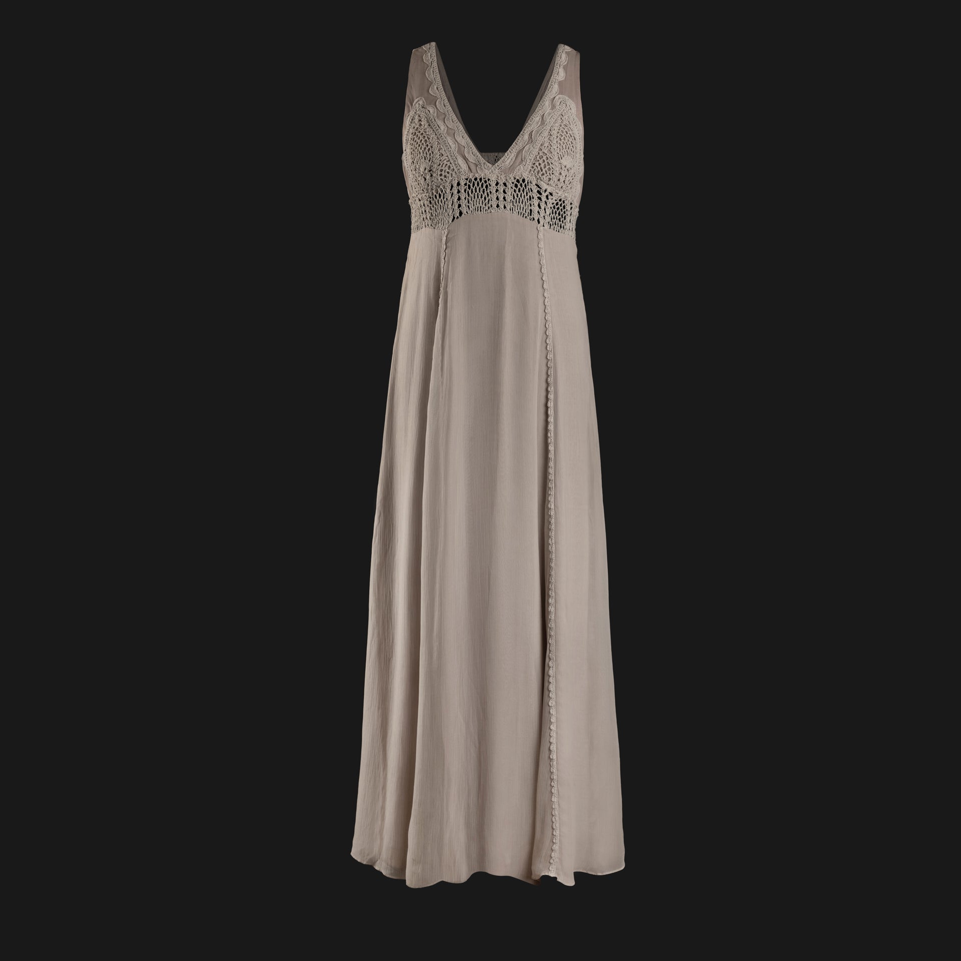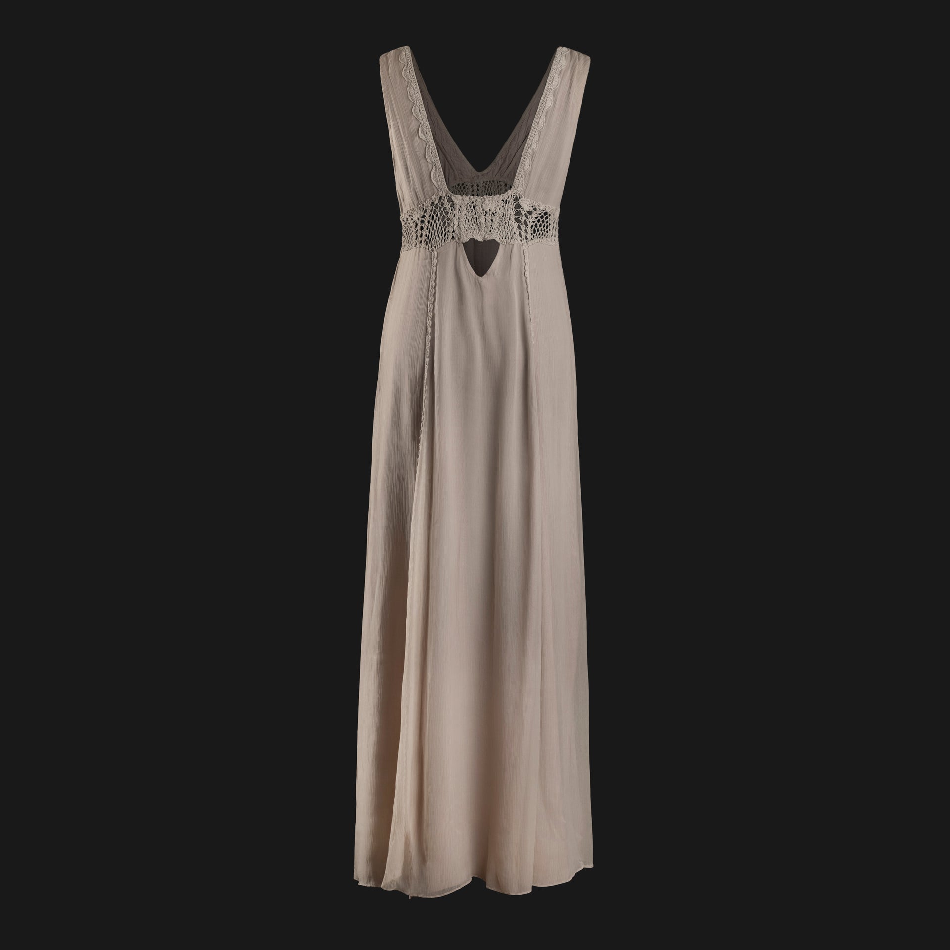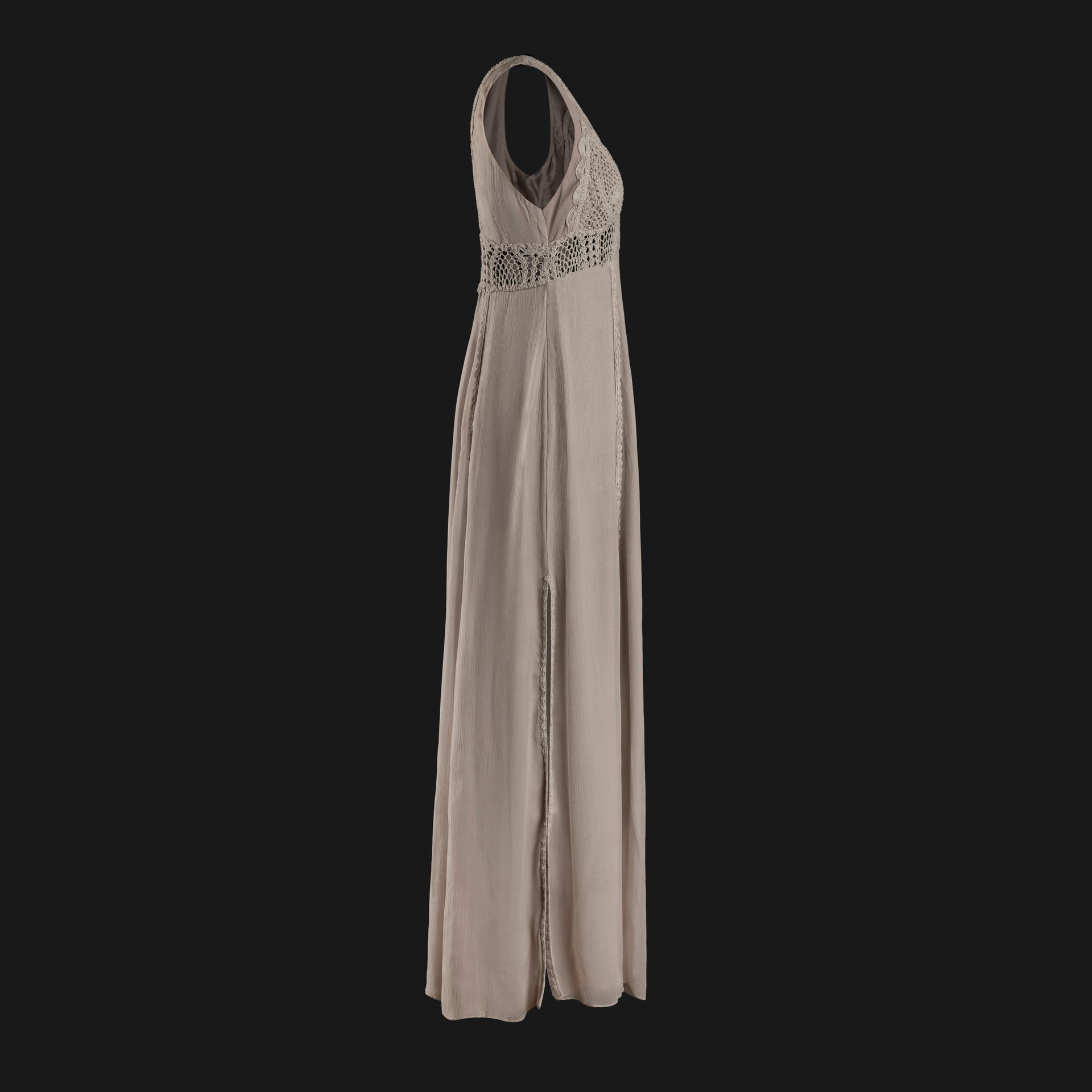 Steel grey gown in crochet fabric with fancy silhouette. It is designed with plunging V neckline, which gives it a very sexy and sleek look for those lunch gatherings!
