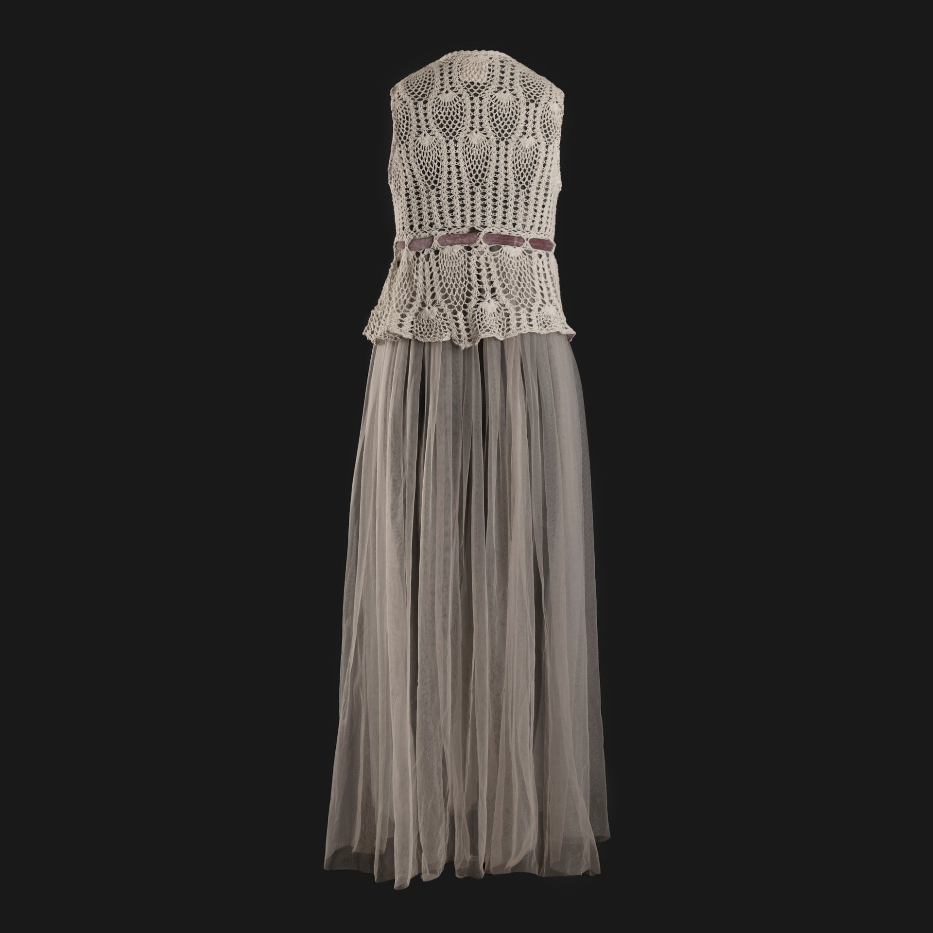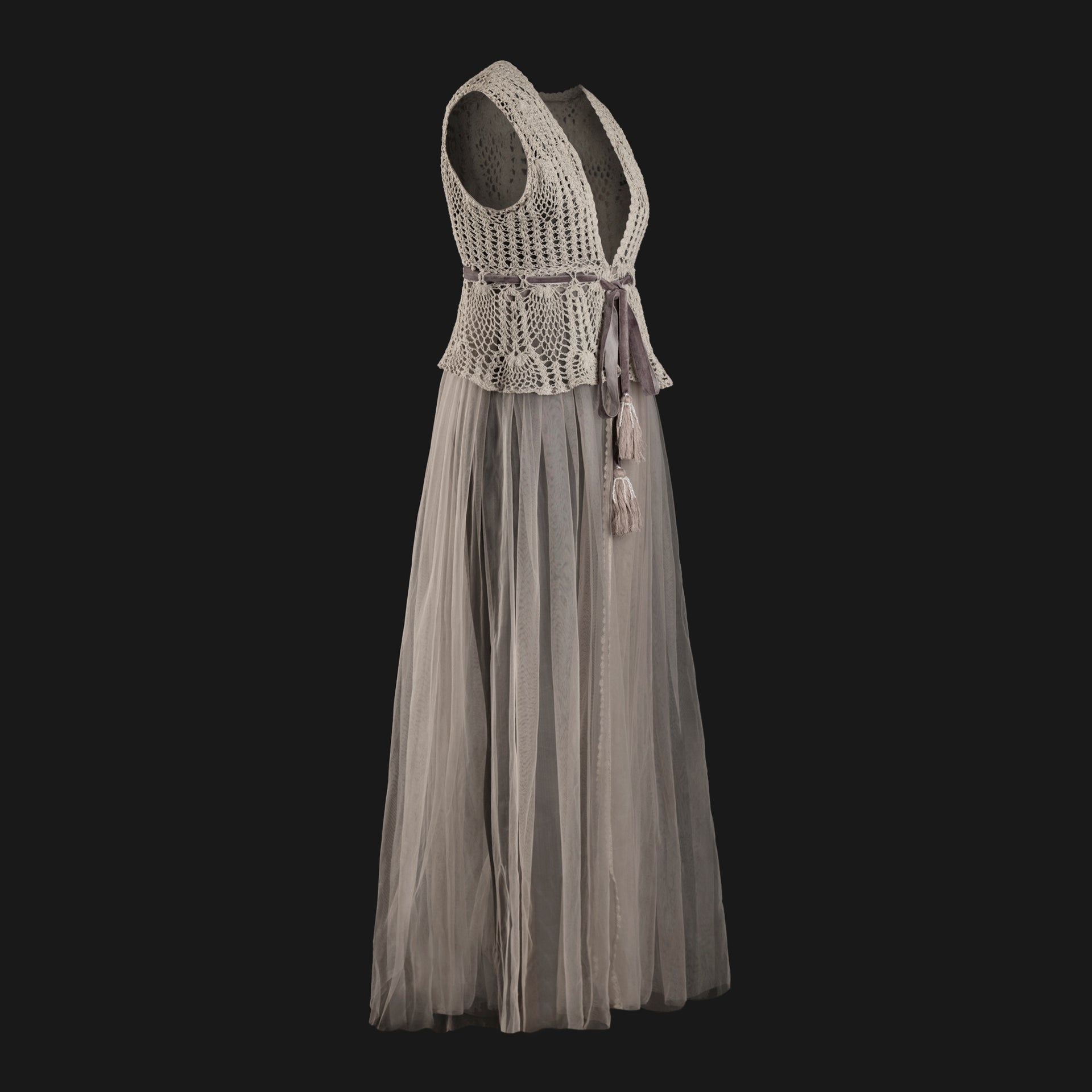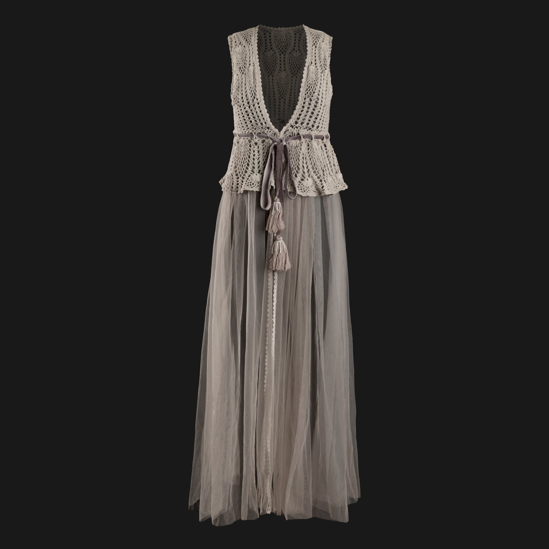 High-Low tunic crafted in crochet with tulle frills to give it a more statement look! Revamp your wardrobe with this stunning piece and stand out from the crowd.