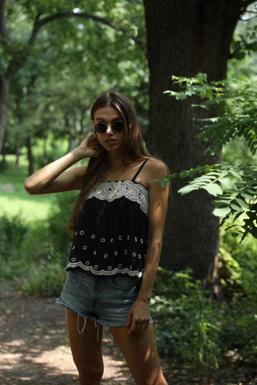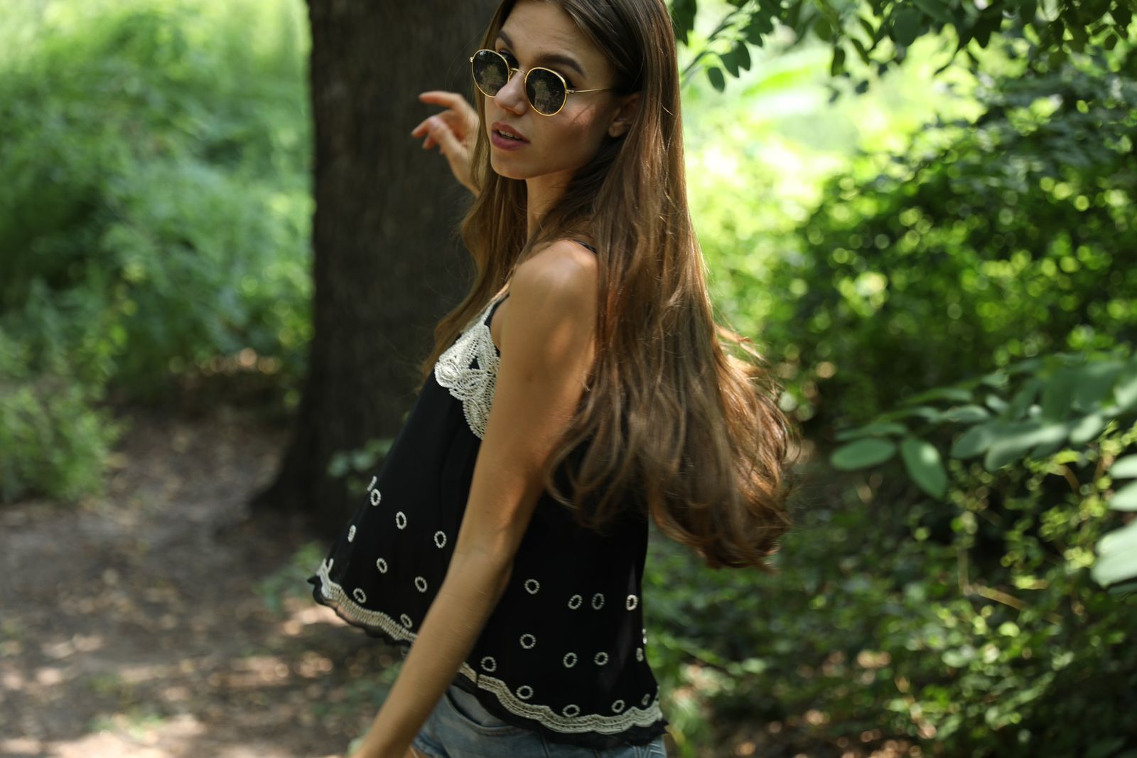 The strappy black top is tailored to sartorial perfection which flaunts anchor and beads for chic appeal while the premium quality georgette fabric assures soft and soothing touch against the skin.
