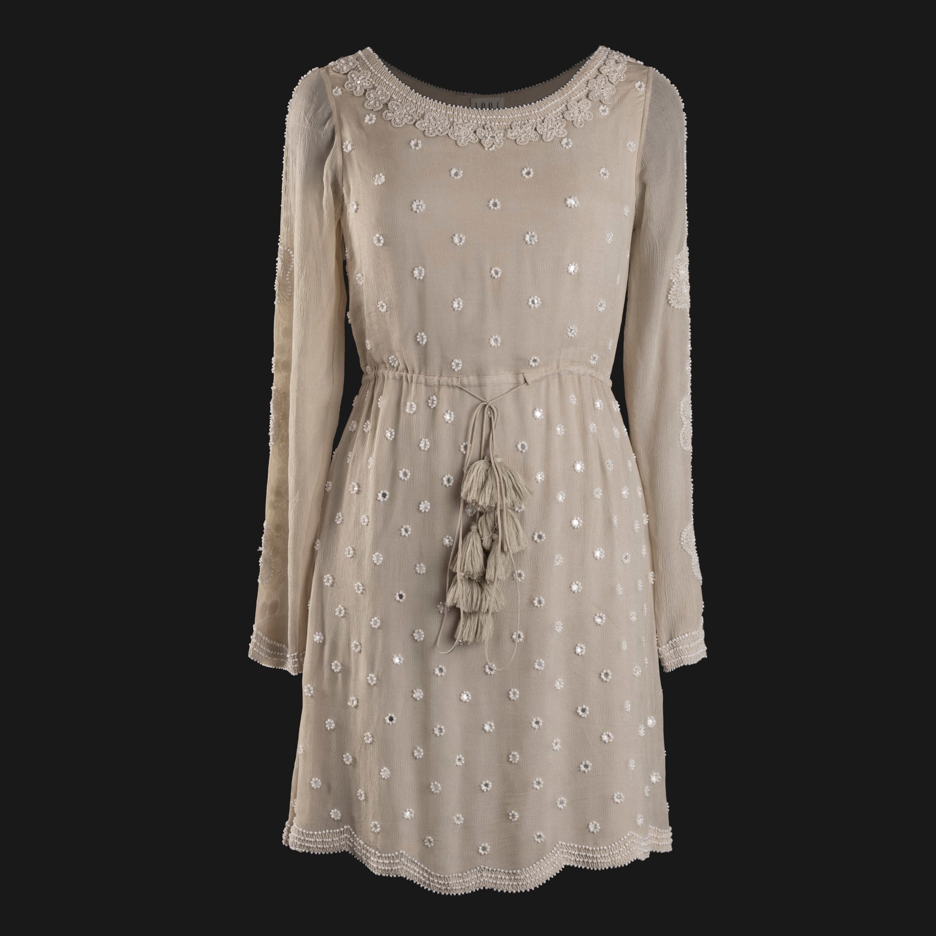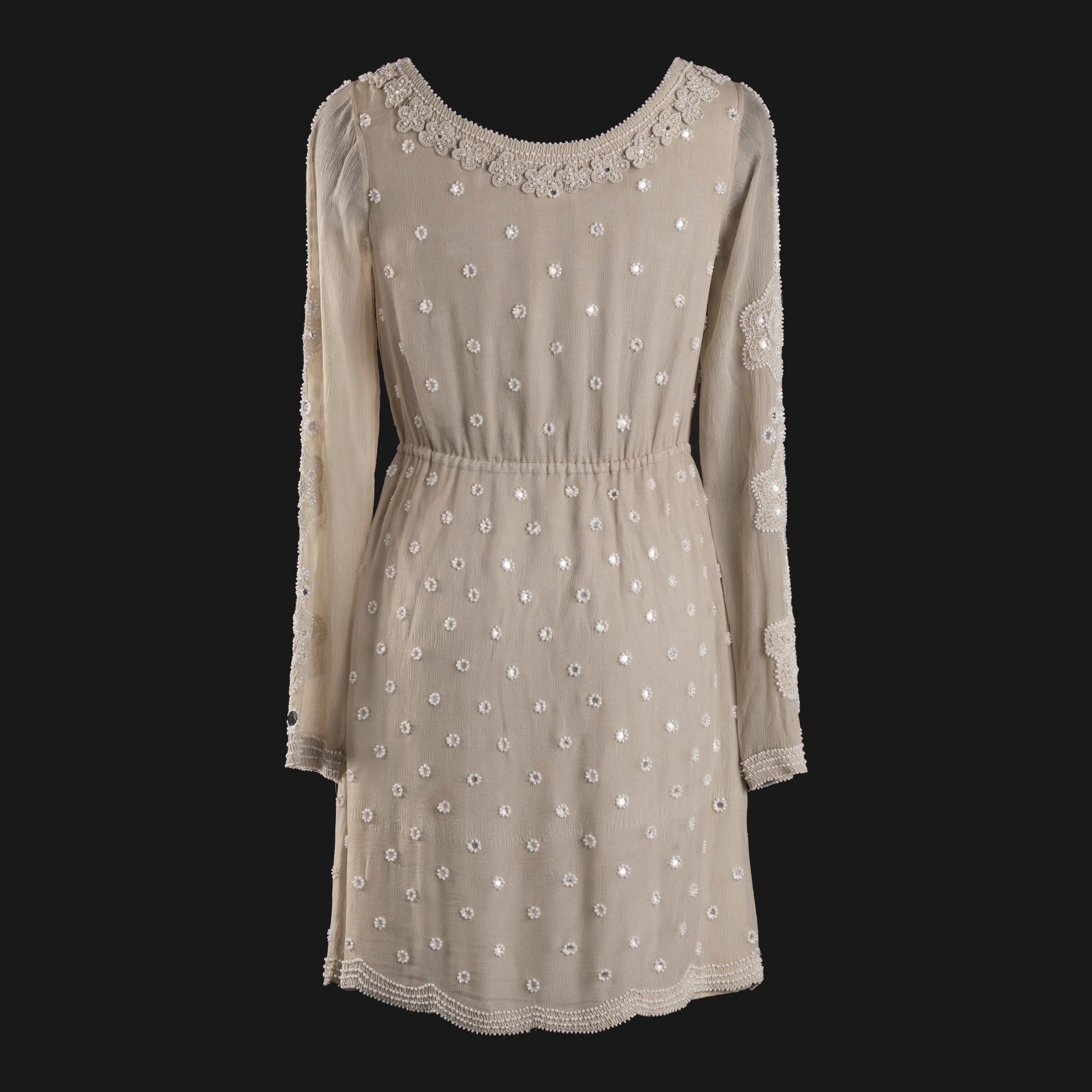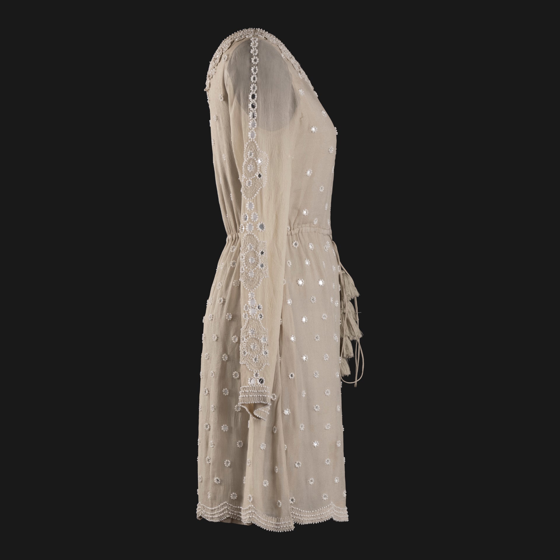 Add a modern twist to your looks with this cream textured crafted in a premium chiffon material, this pearl and mirror embellished patterned beauty will surely raise the bar of your off-duty styling.