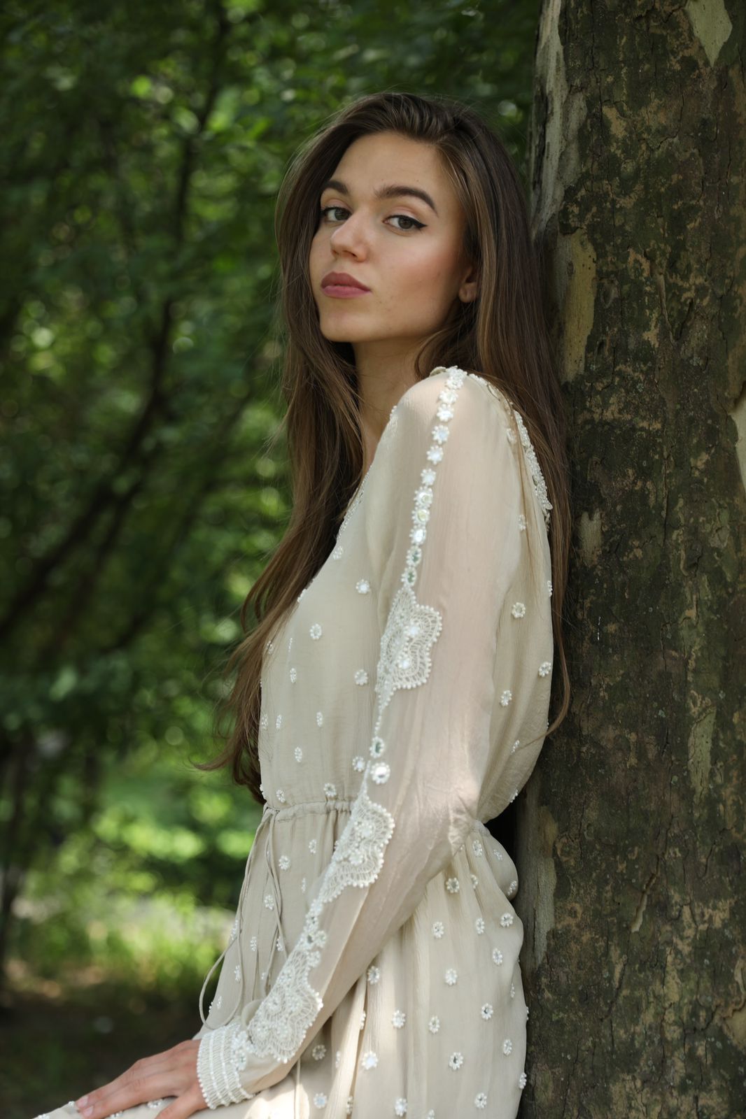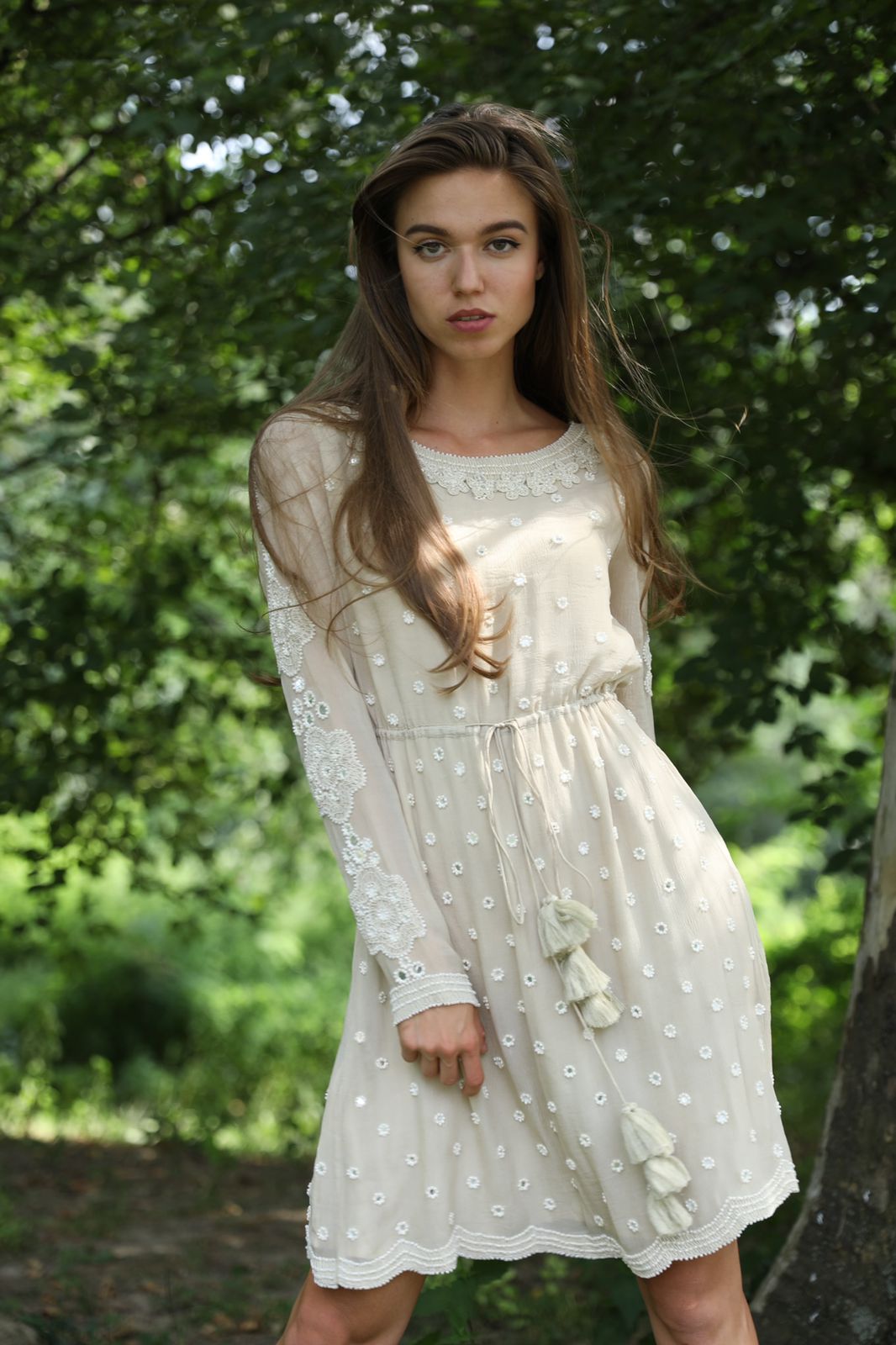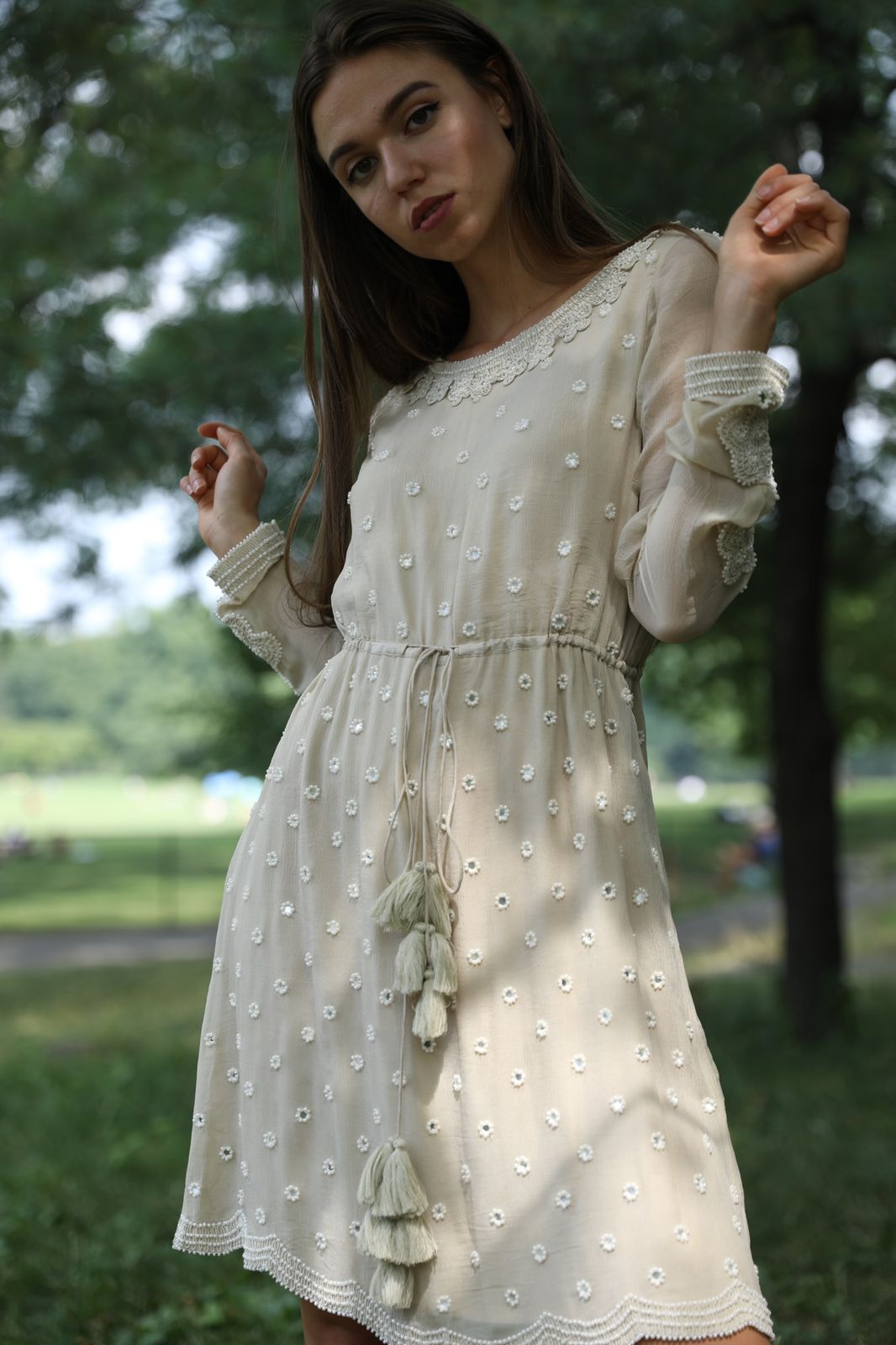 Add a modern twist to your looks with this cream textured crafted in a premium chiffon material, this pearl and mirror embellished patterned beauty will surely raise the bar of your off-duty styling.