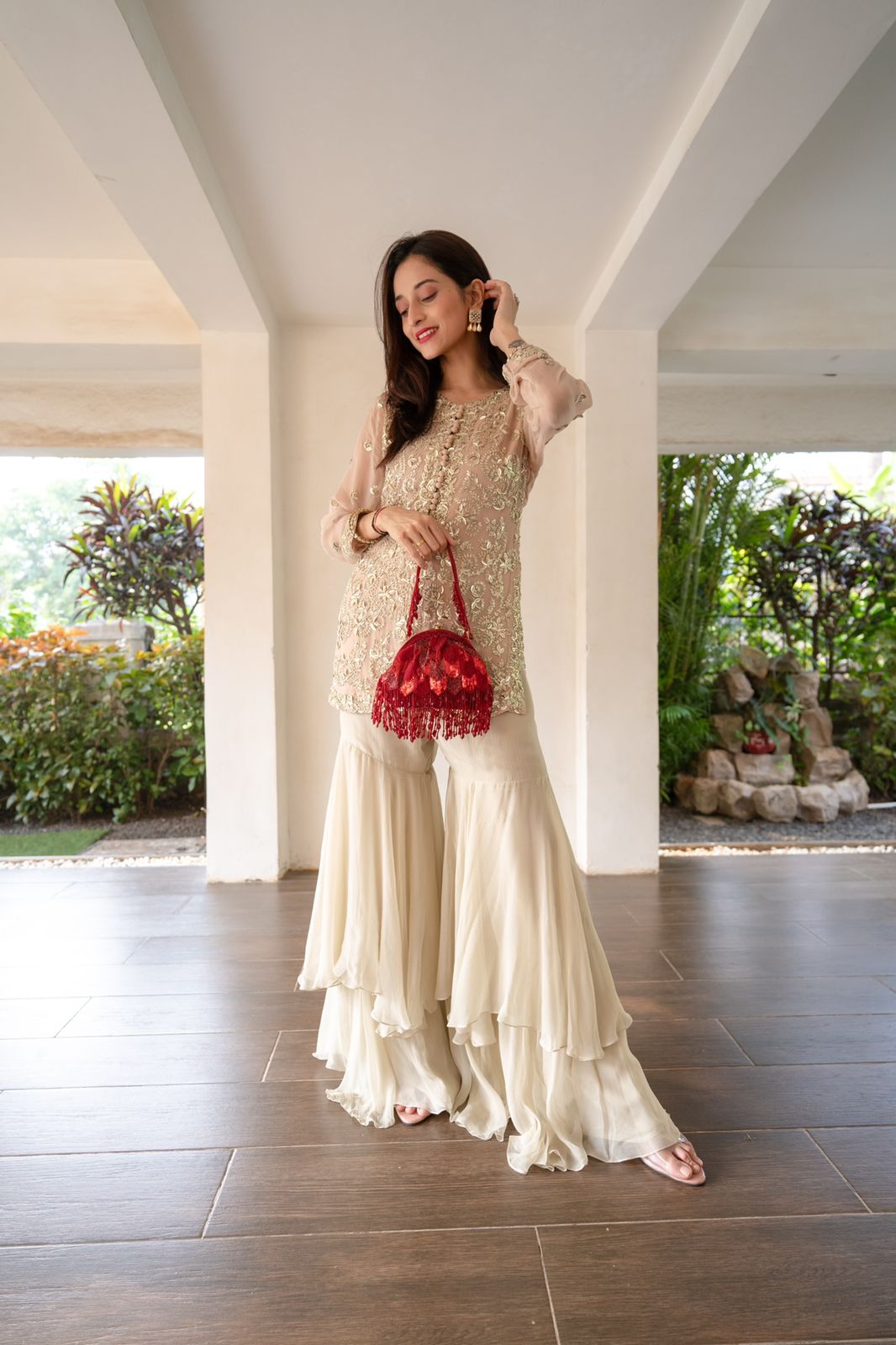 Fabric : Kurta - Silk Chiffon and Sharara - Silk Chiffon