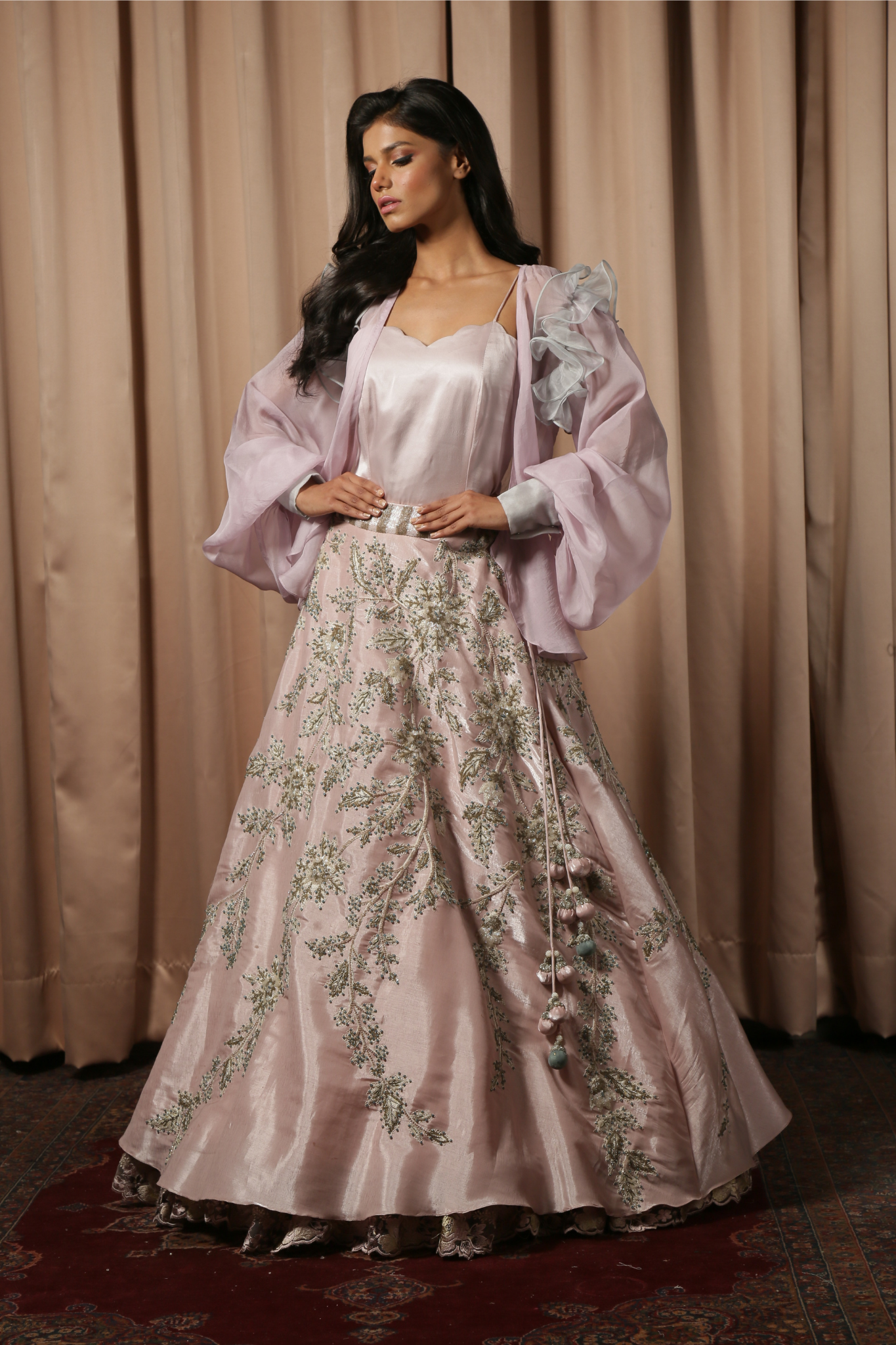 Fabric : Shirt - Organza, Camisole - Satin, Lehenga - Satin & Organza