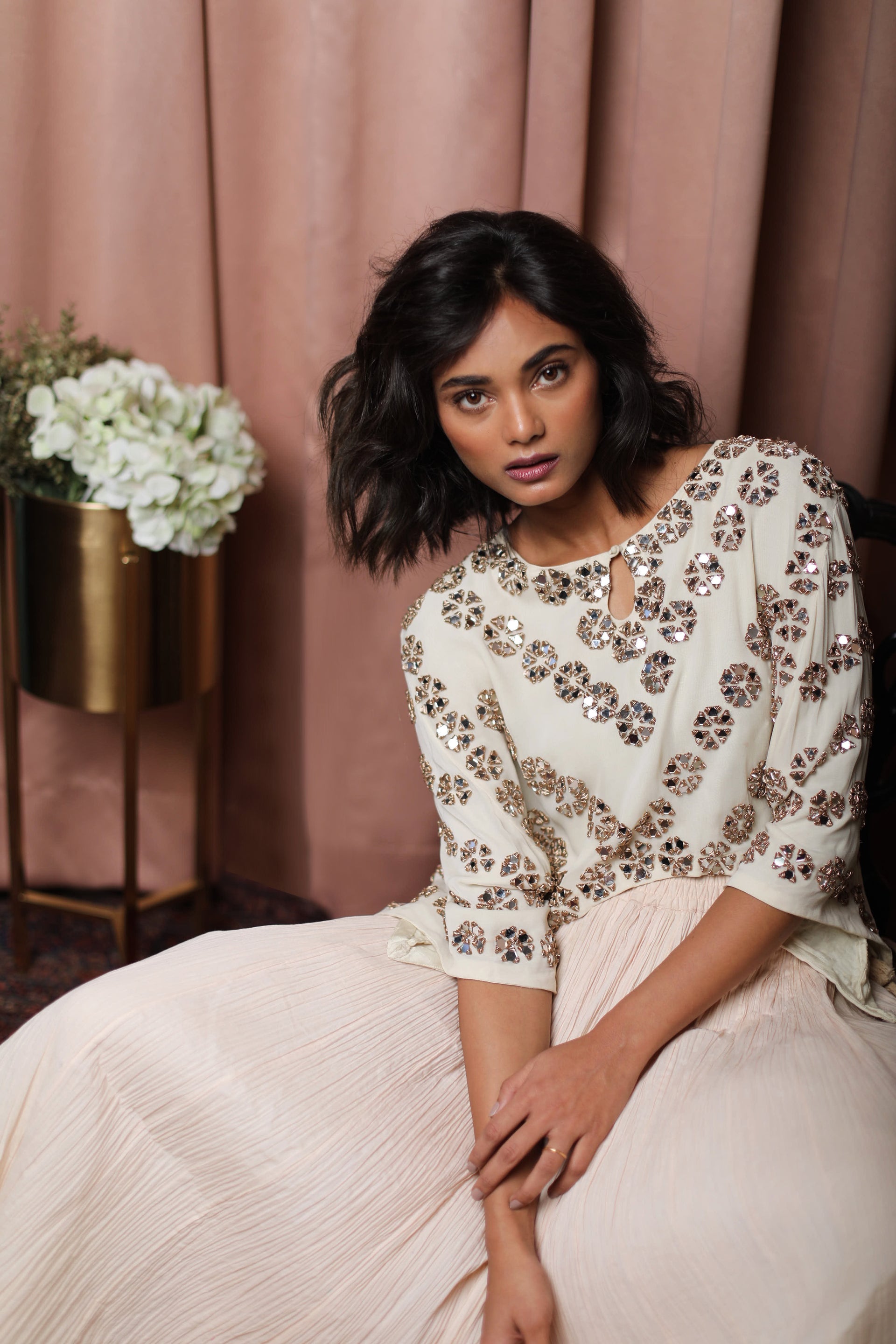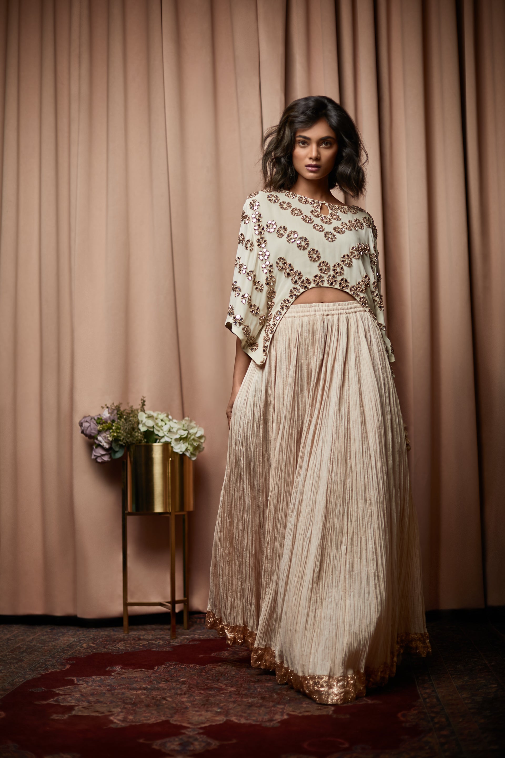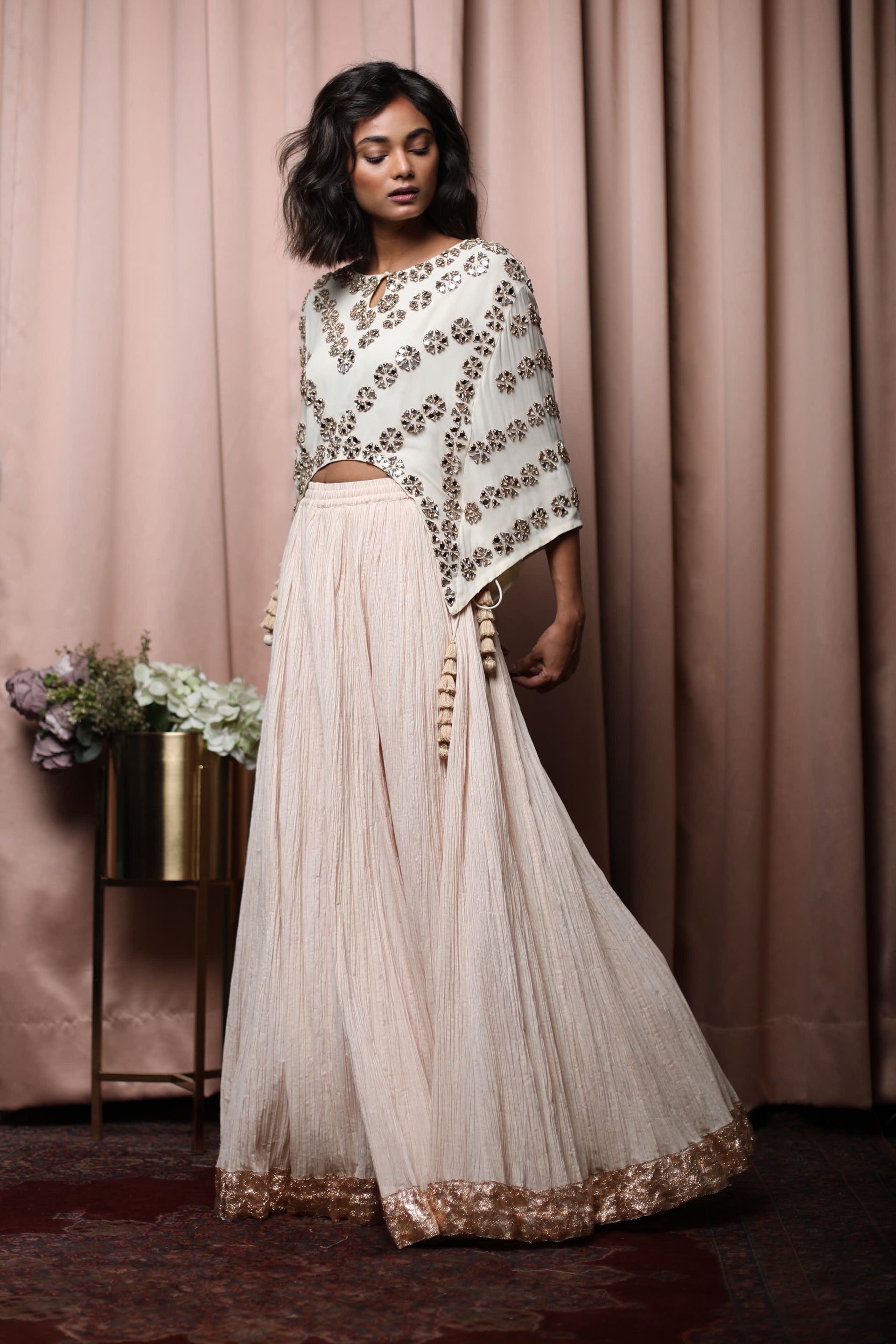 Colour : Top - Ivory, Skirt - Cream