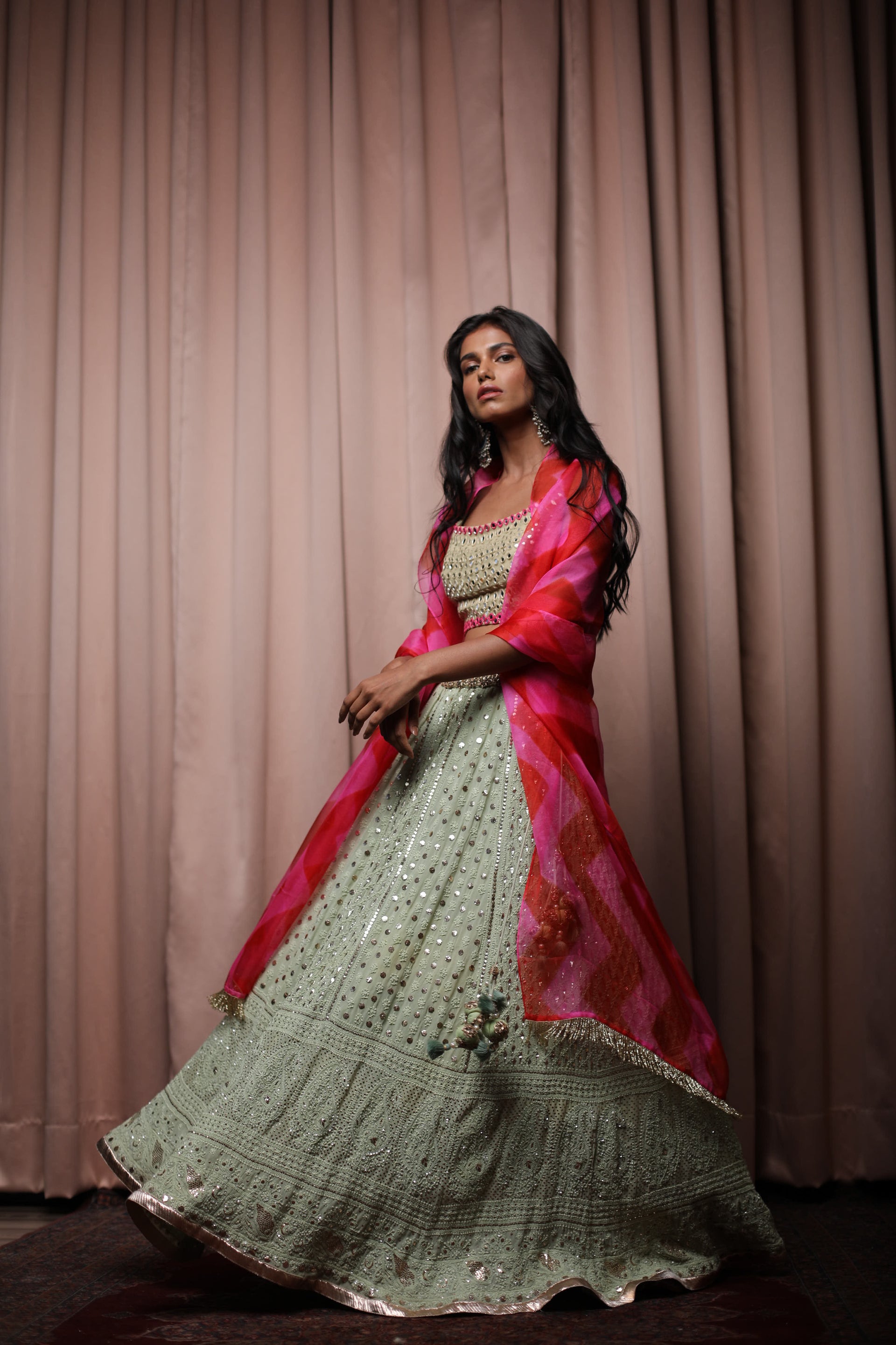 Fabric : Top - Georgette, Lehenga - Geogette, Dupatta - Organza