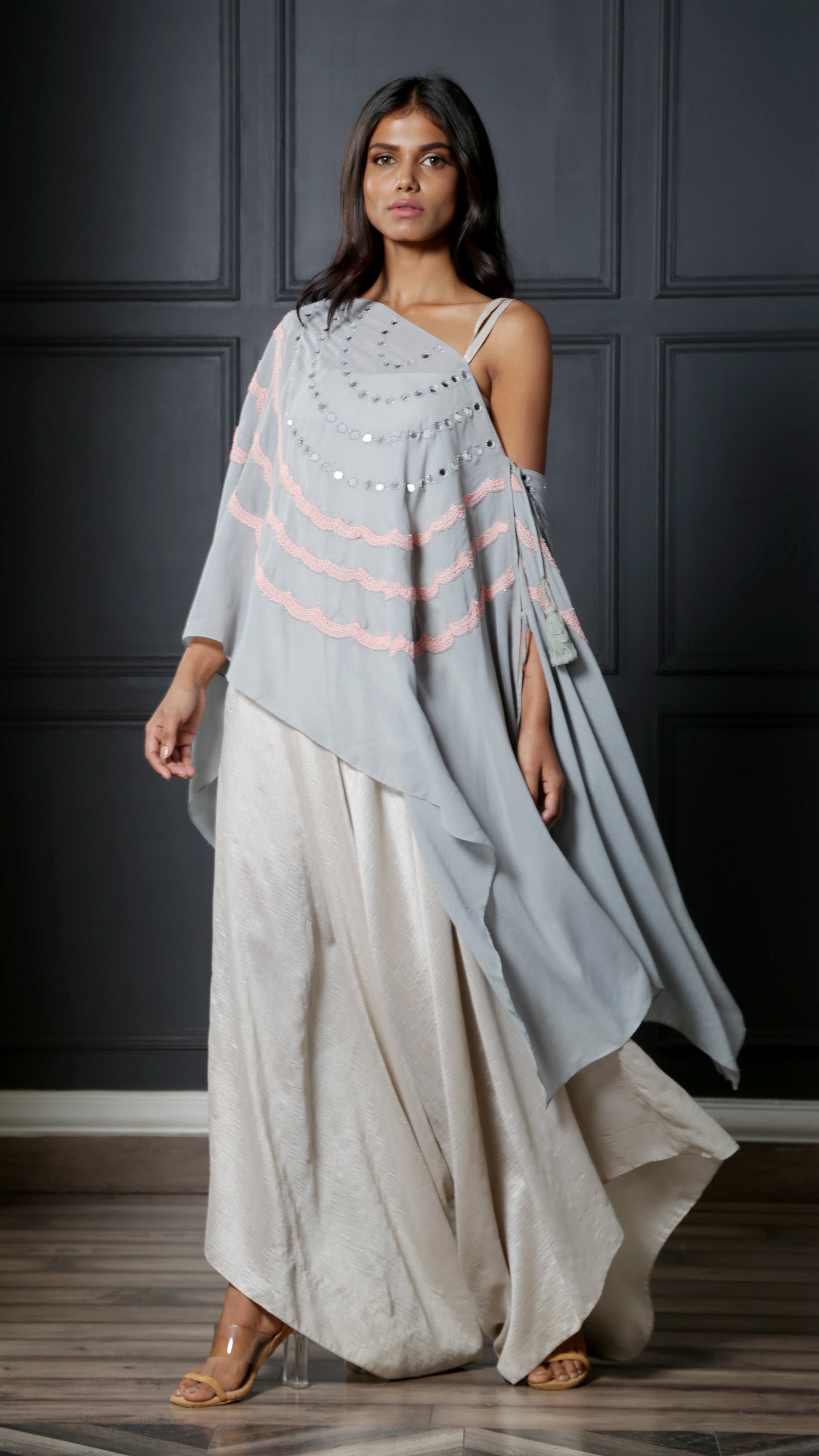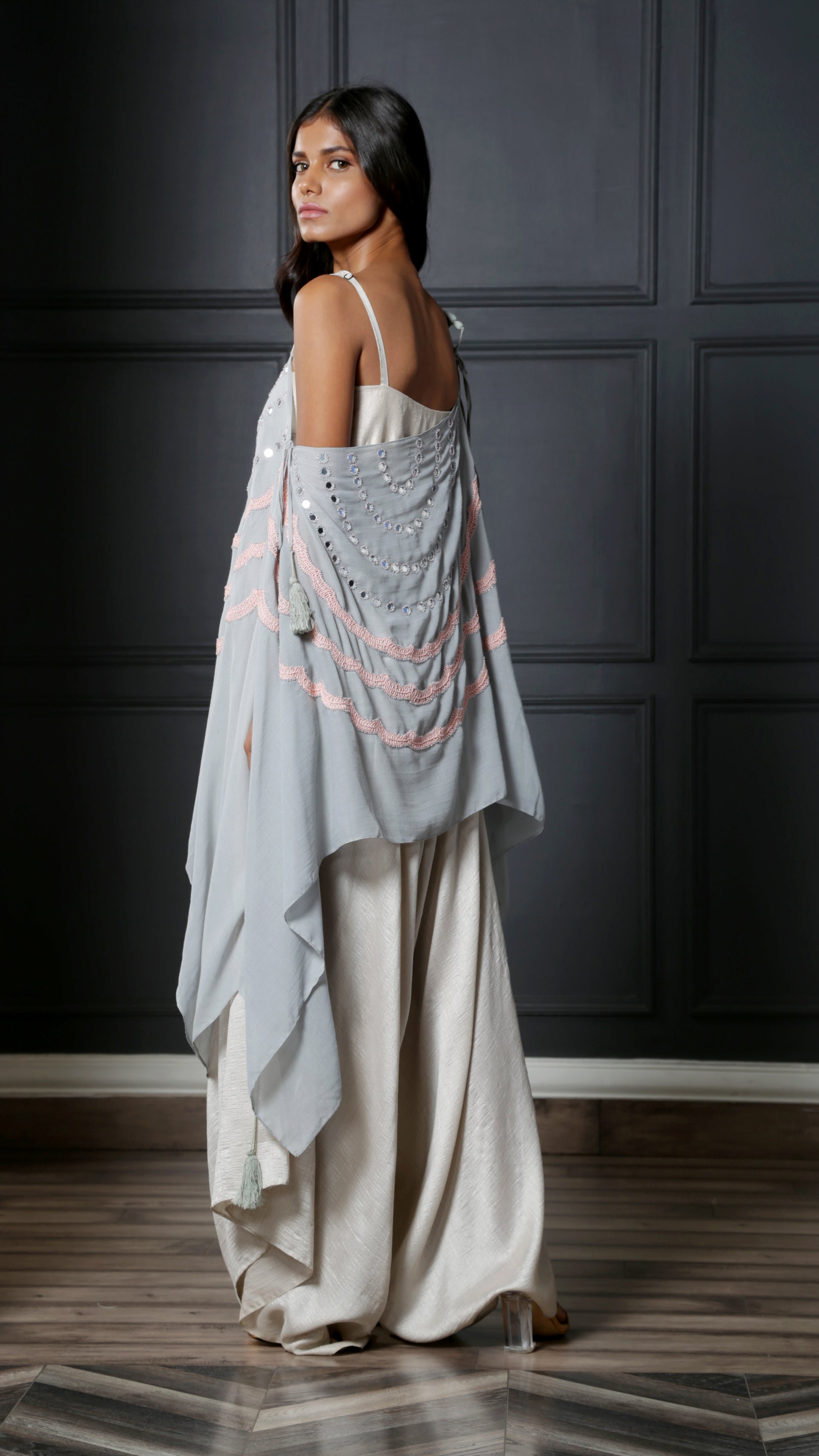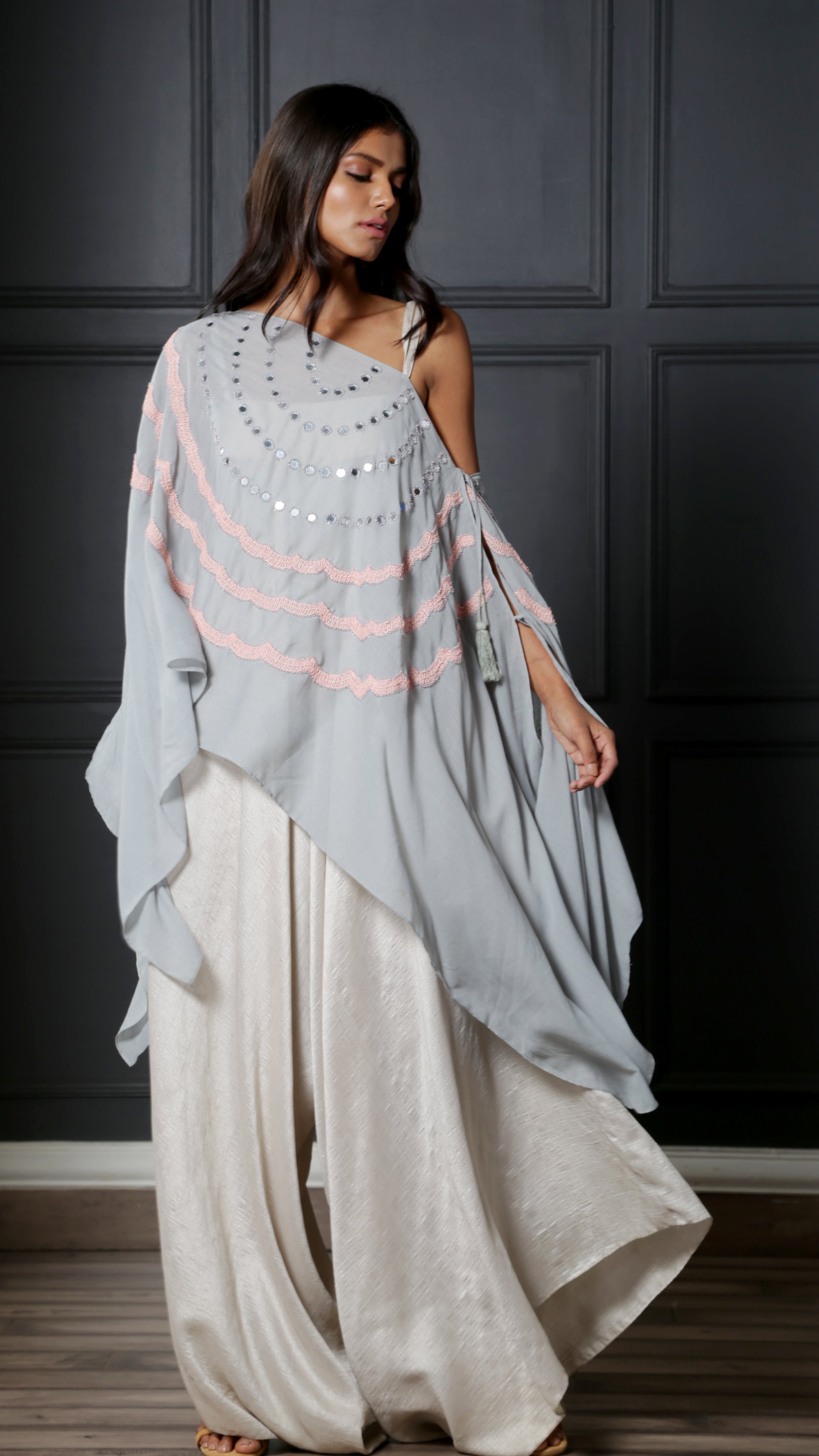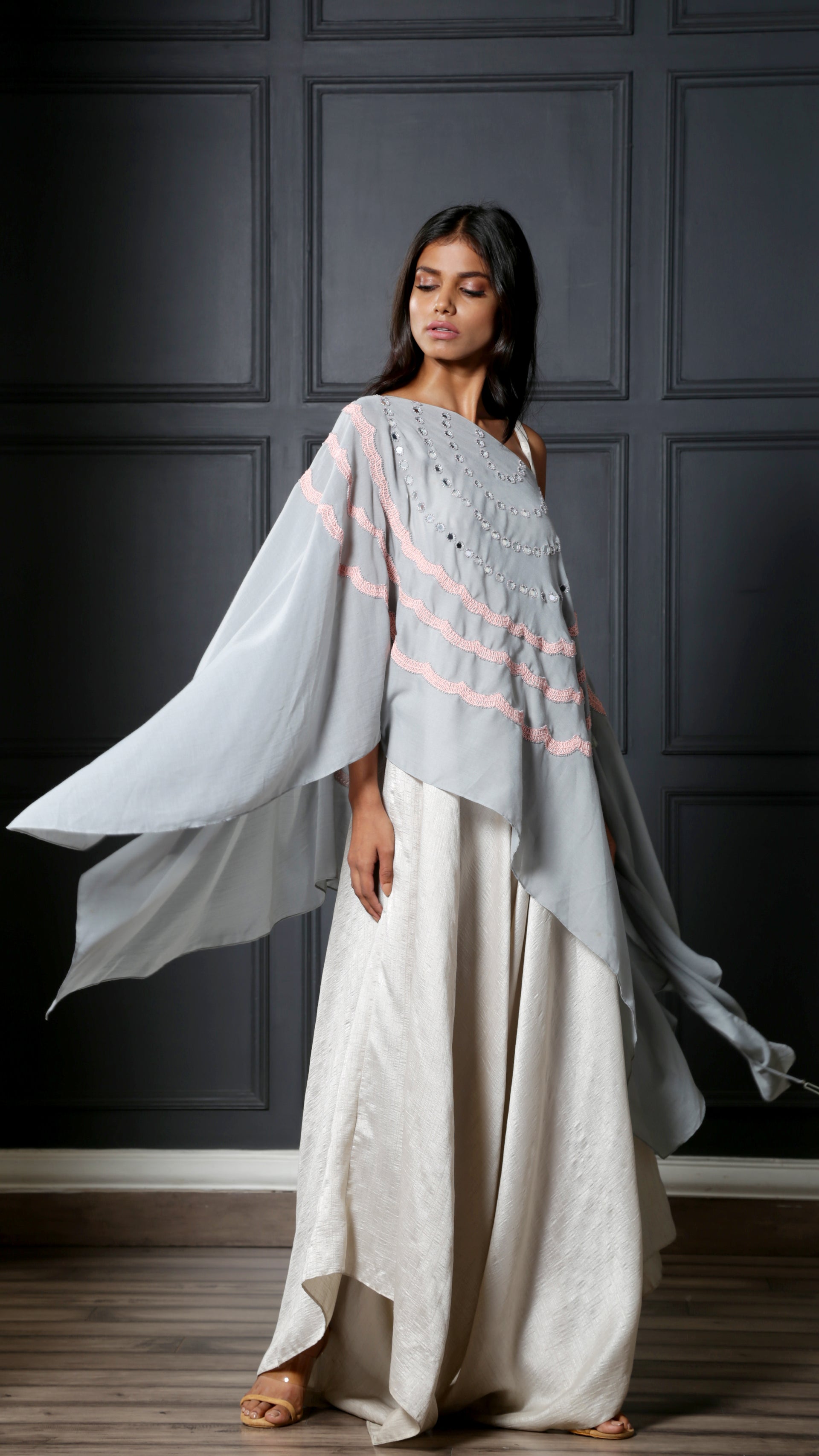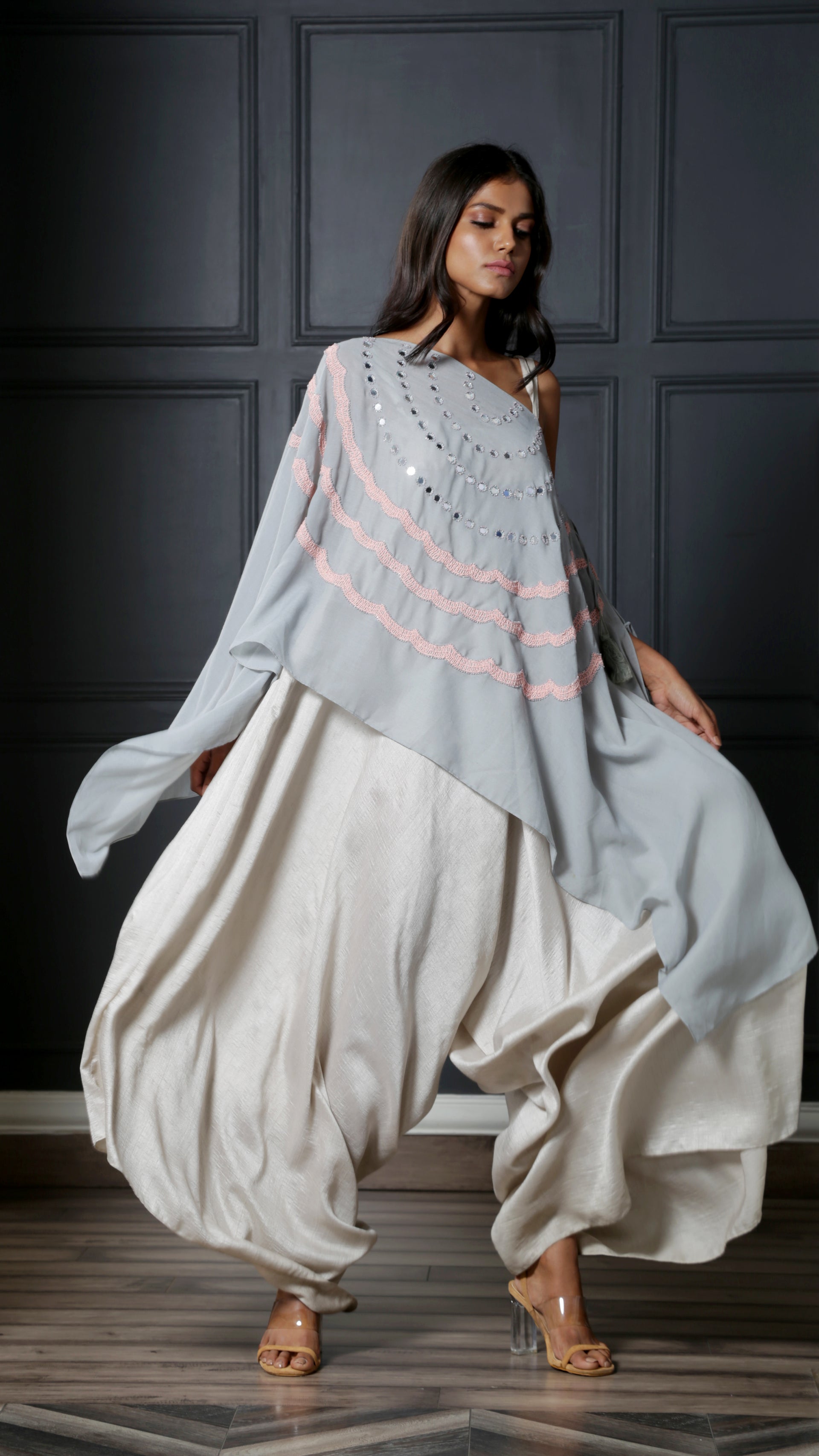 Colour : Top - Powder Blue, Pant - Creme & Pink