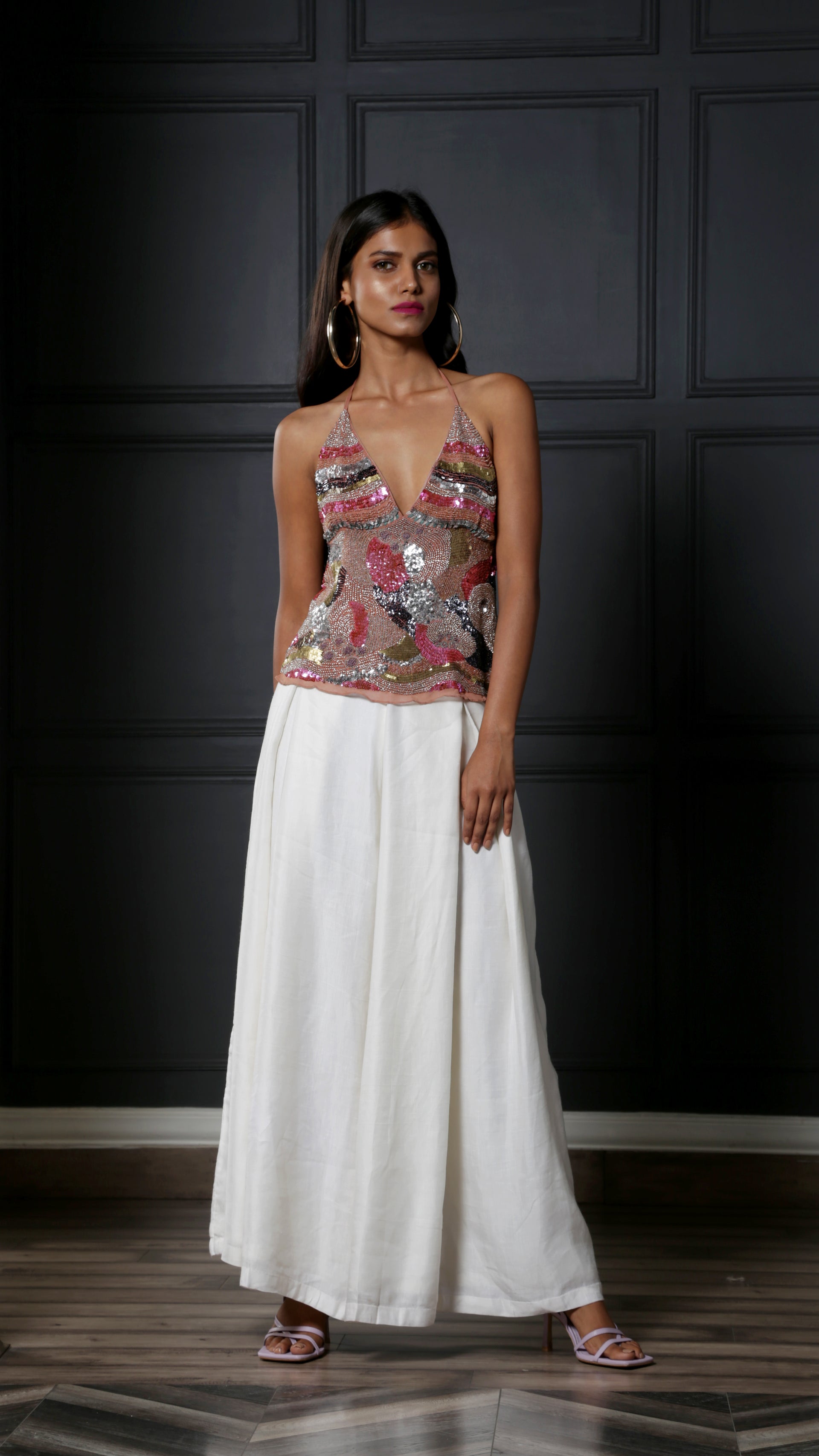 Colour : Top - Multi-coloured ; Pant - Ivory