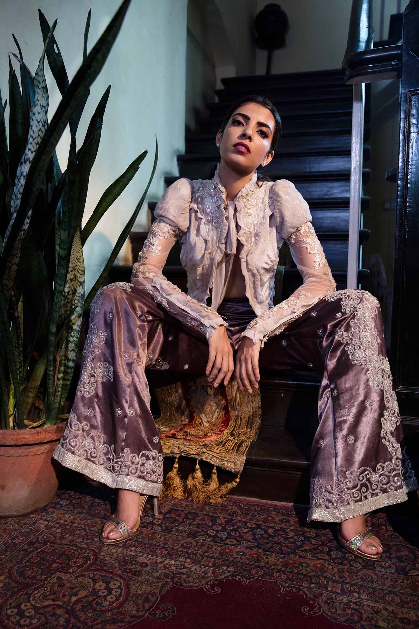 Fabric : Jacket - Velvet, Tulle, Chiffon & Brocade; Pant - Satin
